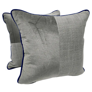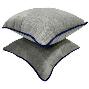 A sophisticated blend of textures and shades of gray, these pillow covers bring a contemporary patchwork design to your space. The striking royal blue piping adds a bold contrast, enhancing the modern aesthetic. Perfect for neutral or cool-toned interiors.