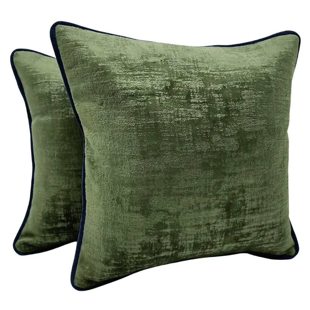 Elevate your décor with this set of 16×16 green pillow covers, featuring a rich textured surface and deep tones that add warmth to any space. The blue piping offers a bold contrast, highlighting the refined design. Perfect for living rooms or bedrooms, these covers bring a balance of elegance and modern style.