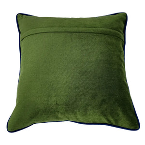 These pillow covers feature a vibrant green velvet fabric with bold blue piping. Add a fresh and luxurious touch to indoor spaces, perfect for brightening up sofas, beds, or accent chairs.