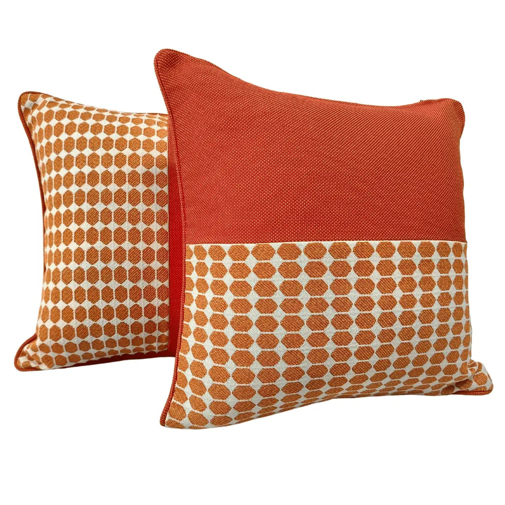 Designed for both indoor and outdoor use, these vibrant pillow covers feature a modern hexagonal pattern paired with a bold solid fabric. Durable and stylish, they add a fresh and contemporary touch to sofas, patio furniture, or lounge chairs.