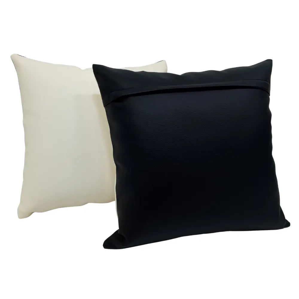 Crafted from durable leather-like fabric, these pillow covers feature a sleek black and white two-tone design for a modern, sophisticated look. Suitable for both indoor and outdoor use, they add a bold yet elegant touch to sofas, patios, or lounge areas.
