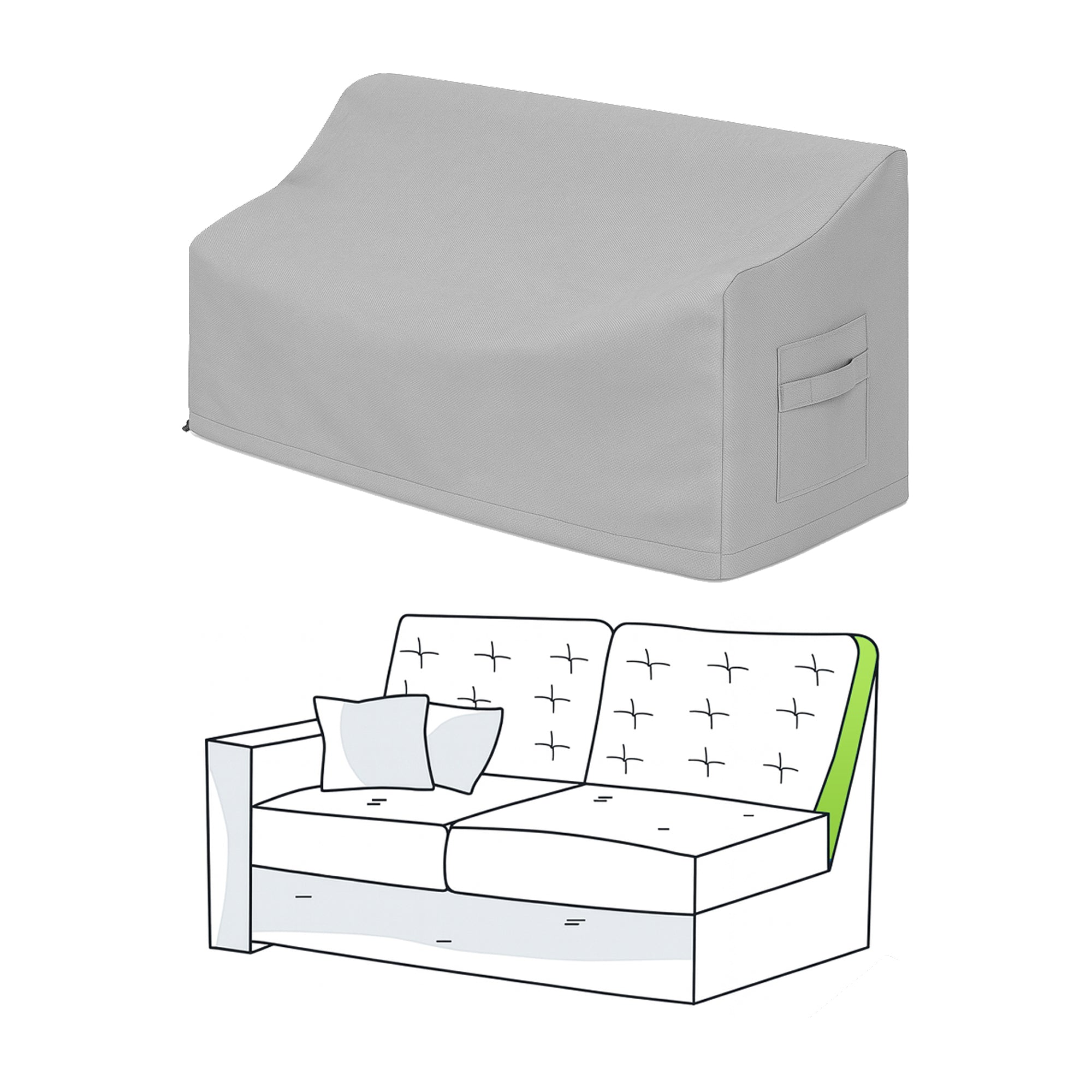 Our Custom Left Arm Loveseat Covers are built specifically for this geometry—measured and cut to align with your loveseat’s exact silhouette. The result is a sleek, perfectly fitted cover that stays secure through every season.