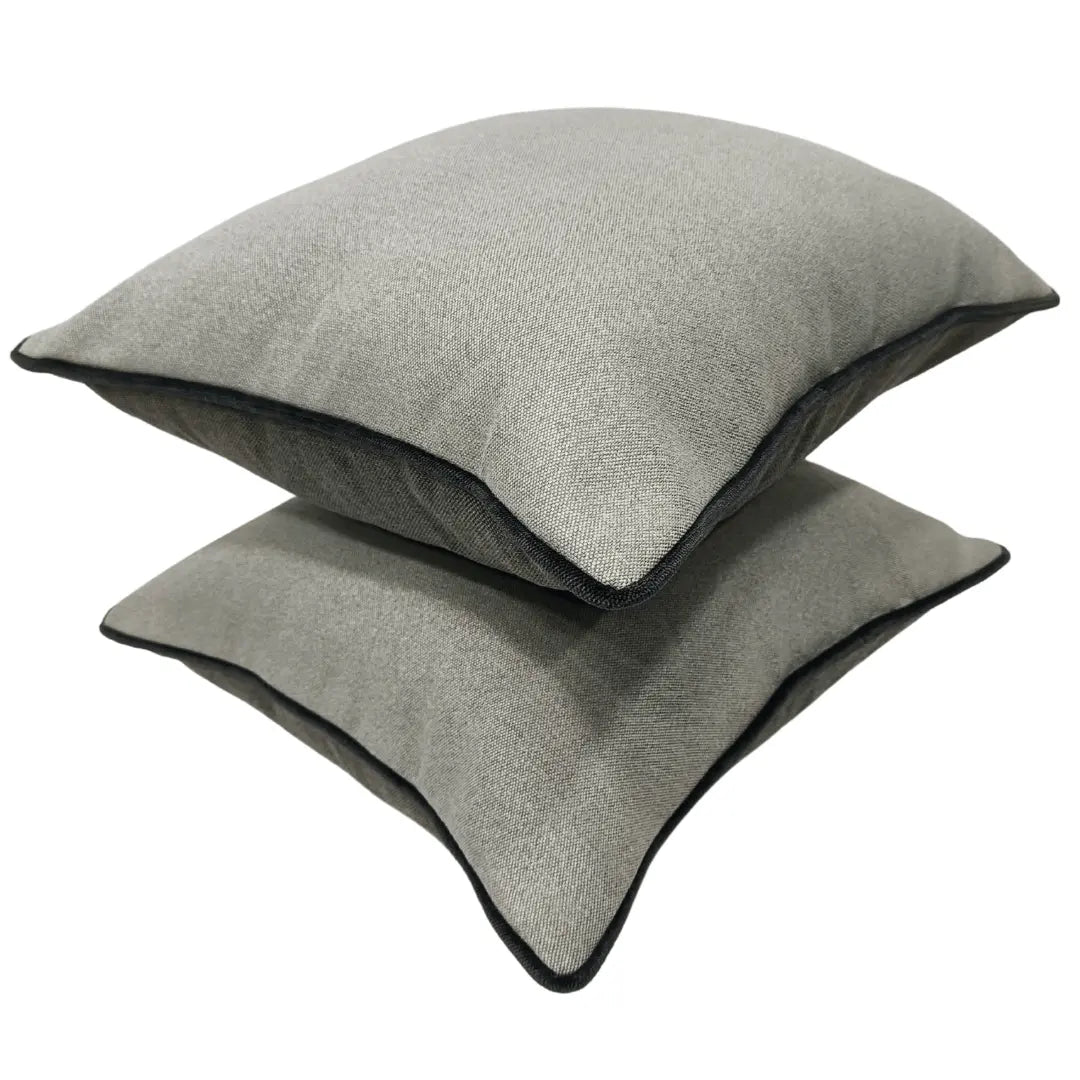 Light Gray Pillow Covers with Black Piping (Set of 2, 16×16)