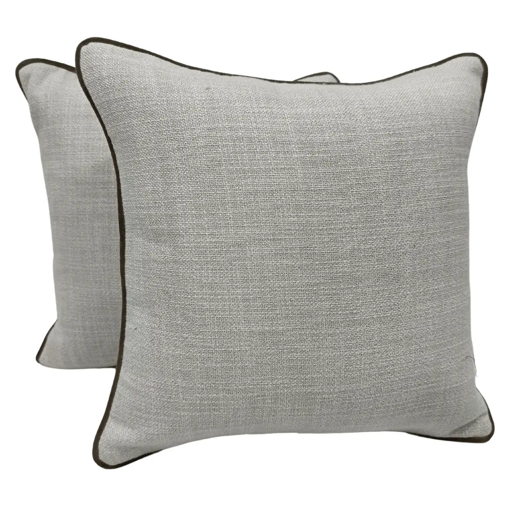 Add a refined touch to your indoor space with these light gray pillow covers. The woven texture enhances their understated elegance, while the dark piping detail provides a subtle contrast.