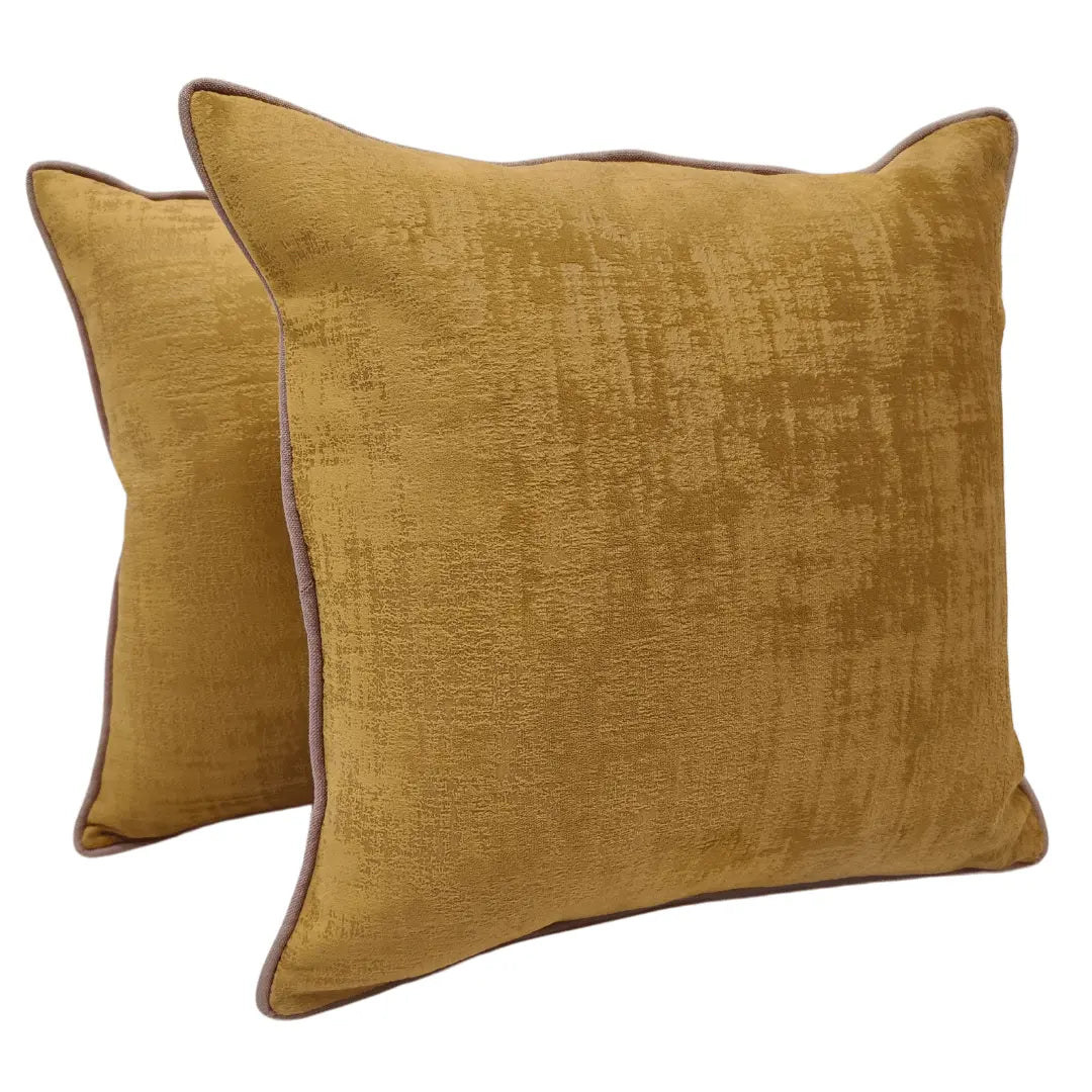 Elevate your indoor decor with these plush velvet cushion covers in a warm mustard shade. The soft, textured fabric adds a touch of sophistication, while the subtle sheen enhances their luxurious appeal.