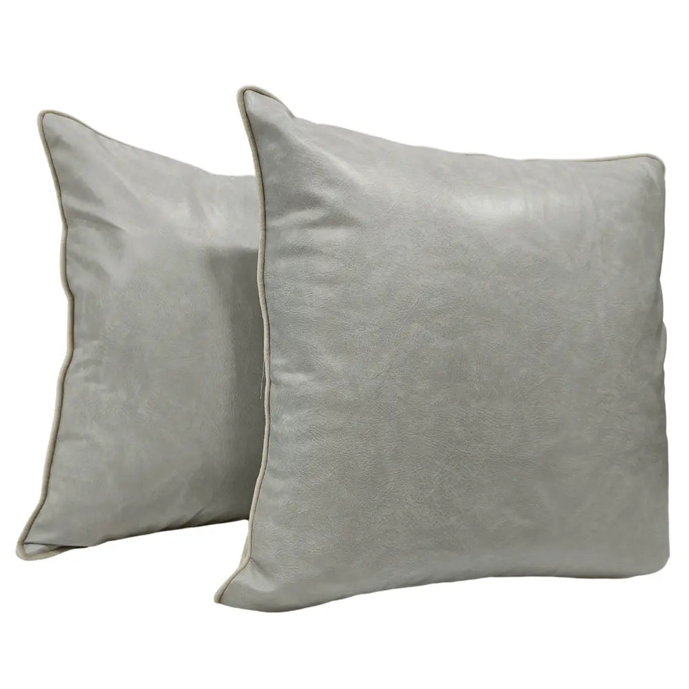 Elevate your home décor with this set of elegant two-tone pillow covers, featuring a sophisticated blend of smooth faux leather and soft chenille. The refined light gray and beige color palette, complemented by delicate piping, adds a touch of modern luxury to any indoor space.