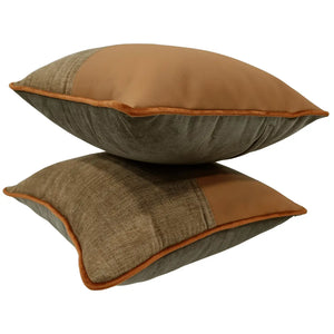 Add a touch of contemporary elegance to your indoor space with these striking patchwork pillow covers. Featuring a sophisticated mix of textures, the design seamlessly blends smooth and velvety surfaces for a refined look. The contrast piping enhances the structure, making these covers a stylish accent for sofas, armchairs, or beds.