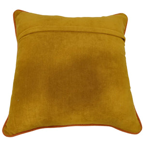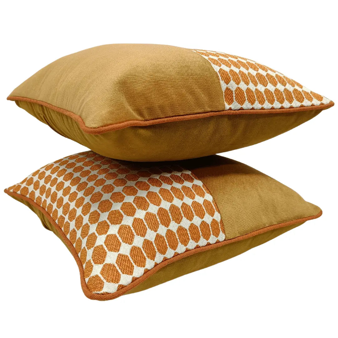 Elevate your indoor decor with these 16x16 pillow covers, featuring a vibrant mustard base and eye catching orange geometric pattern. The orange piping ties it all together, offering a bold yet sophisticated accent to any space.