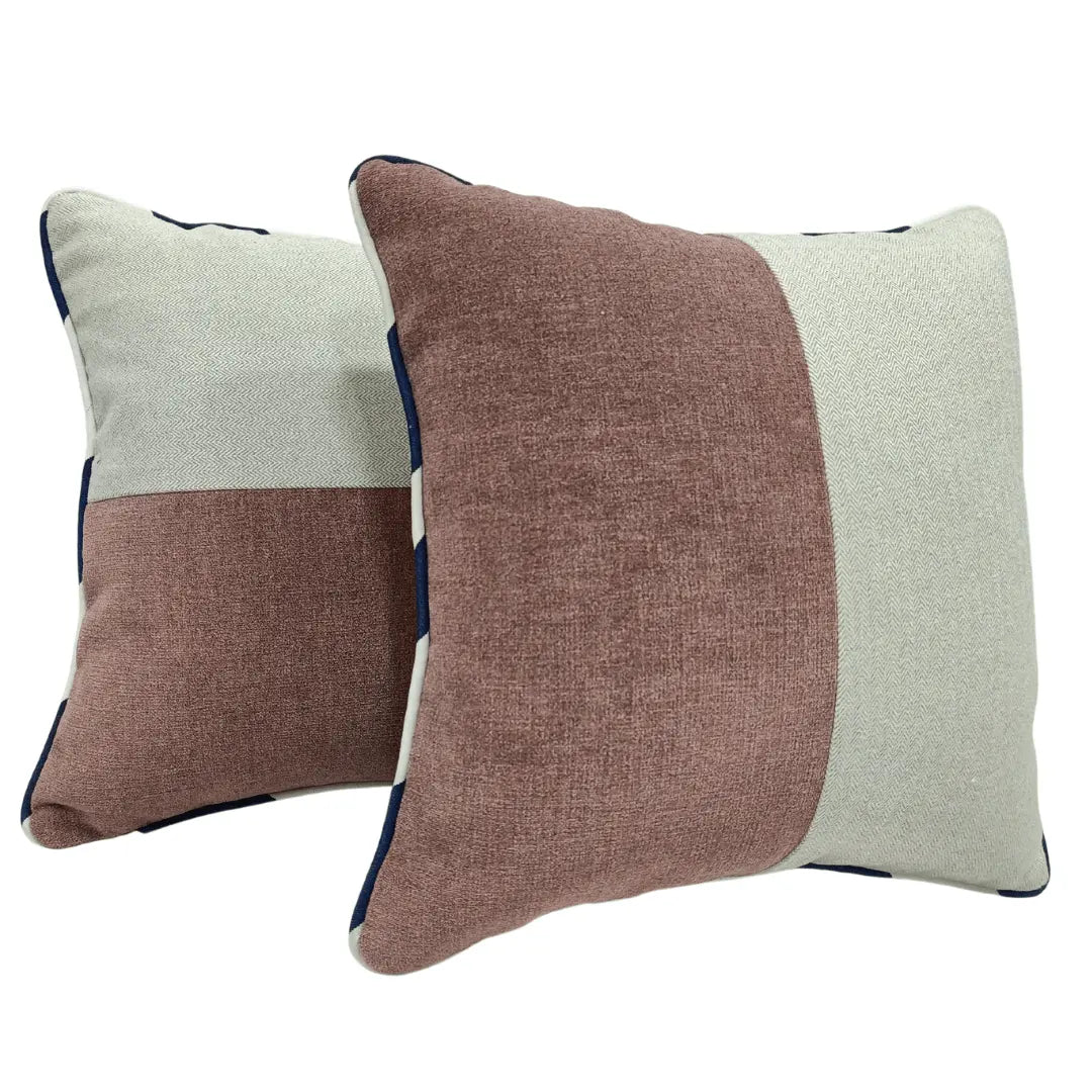 A beautiful blend of soft beige and muted mauve, accented with contrast piping for a refined touch. These pillow covers offer a warm and sophisticated look, ideal for both contemporary and traditional interiors. Made from high-quality fabric, they provide comfort and durability.