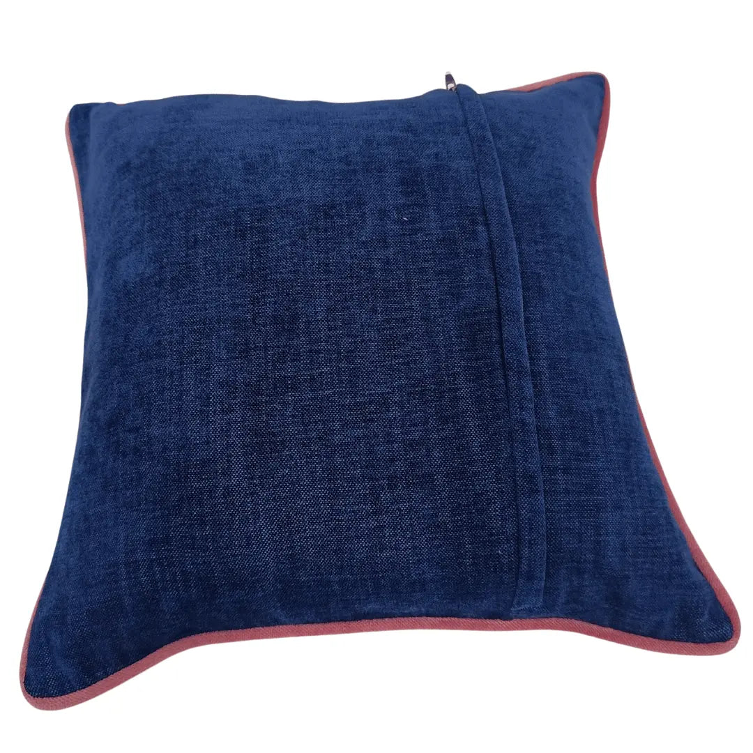 Make a bold statement with these vibrant royal blue pillow covers, accented with soft pink piping. Crafted from a mix of rich velvet and smooth fabric, they bring a contemporary yet cozy touch to sofas, chairs, or beds. Perfect for adding a pop of color to your interiors.