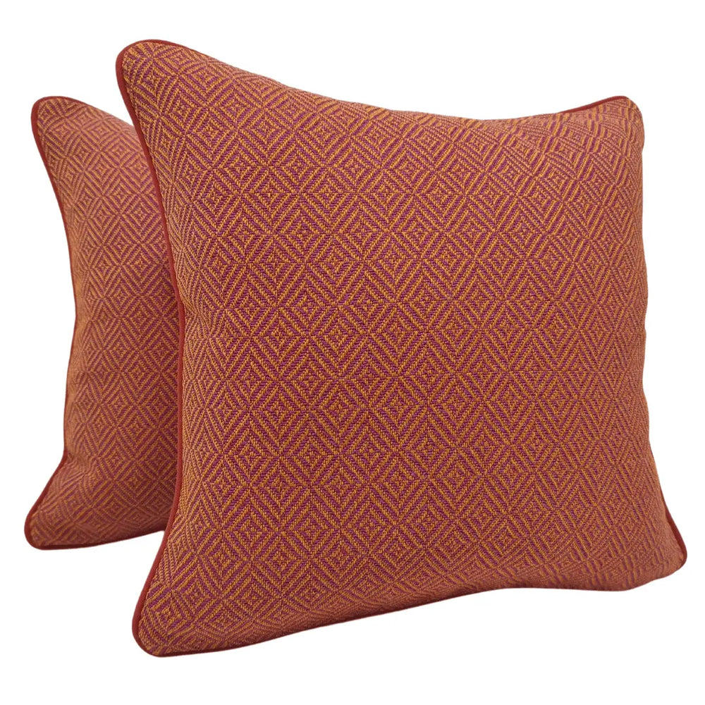 Add warmth and character to your space with this set of two cushion covers featuring a rich rust and red geometric pattern. The textured fabric is complemented by solid rust backing and bold contrast piping, creating a refined and modern aesthetic. Perfect for sofas, beds, or accent chairs, these covers bring a vibrant yet sophisticated touch to any décor.