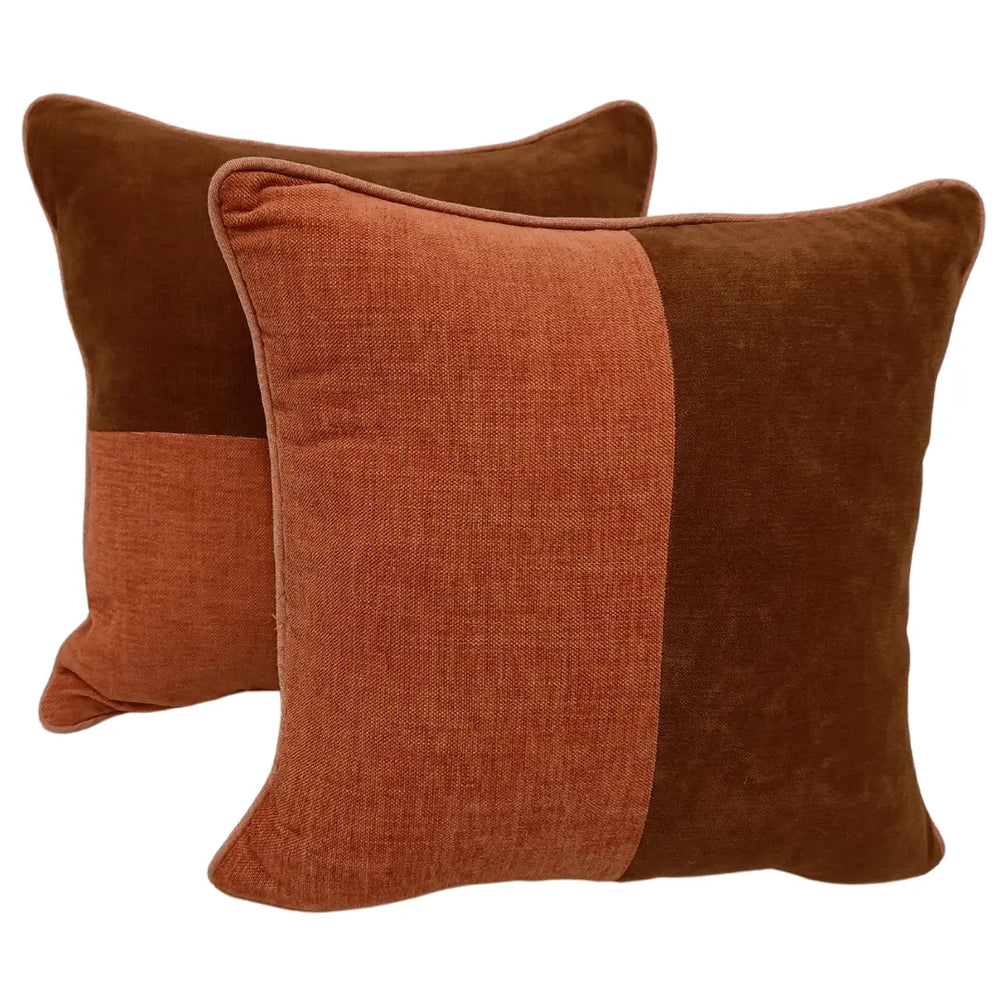 Add warmth and depth to your space with this set of rust and mocha dual-tone pillow covers. Designed with a soft, textured fabric, these covers offer a rich, inviting feel that complements a variety of décor styles. Perfect for cozying up your living room or bedroom, their elegant contrast and plush finish make them a stylish accent for any setting.