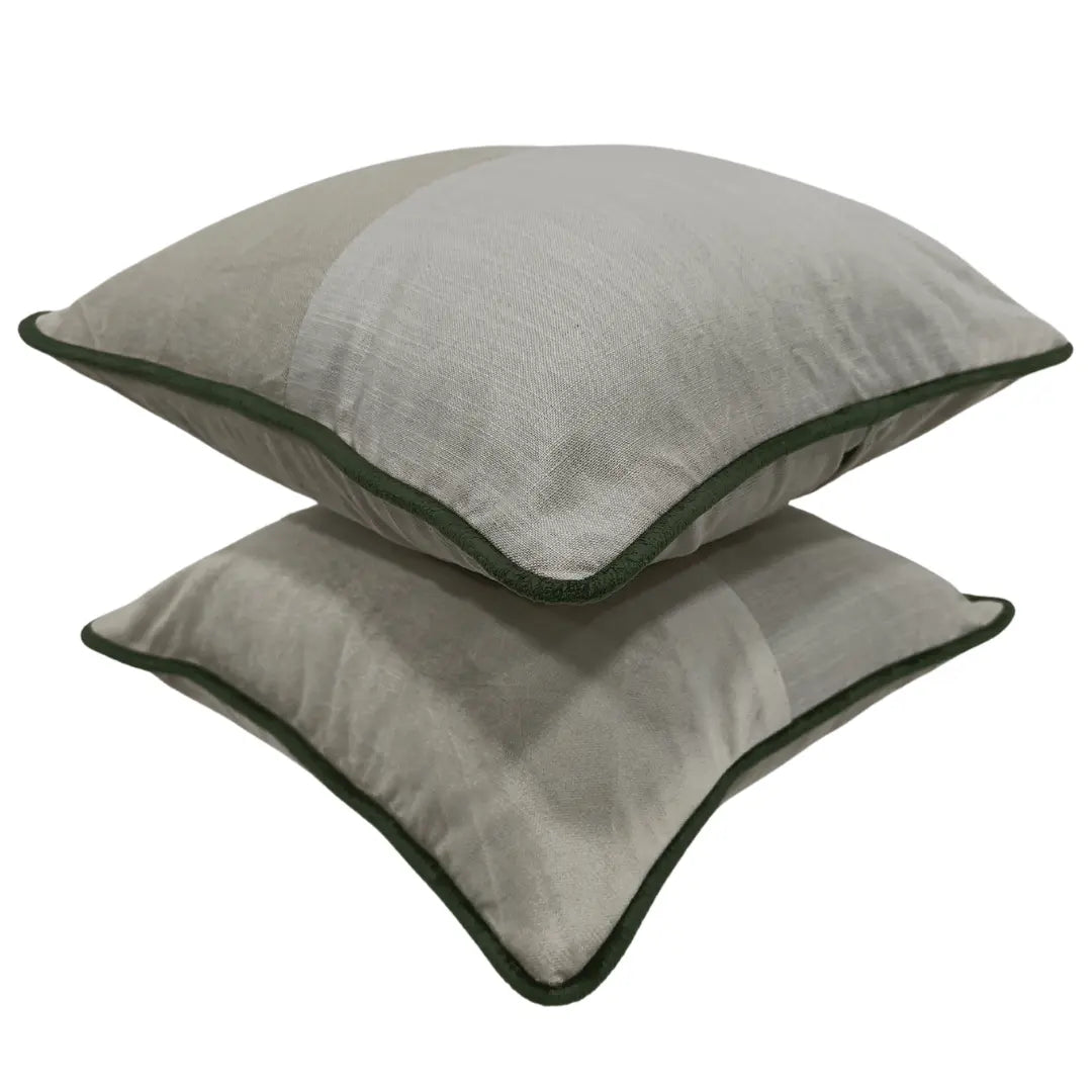 Featuring a refined sage and ivory color combination, these pillow covers add a subtle touch of elegance to any indoor space. The soft fabric blend and contrasting green piping enhance their sophisticated appeal. Ideal for sofas, chairs, or beds. Size: 16x16 inches.