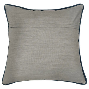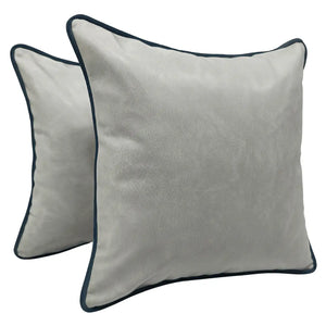 These soft gray pillow covers feature a smooth leather-like texture for a sleek, modern look. Accented with deep blue piping, they add a touch of sophistication to any indoor space. Perfect for creating a refined yet inviting atmosphere.