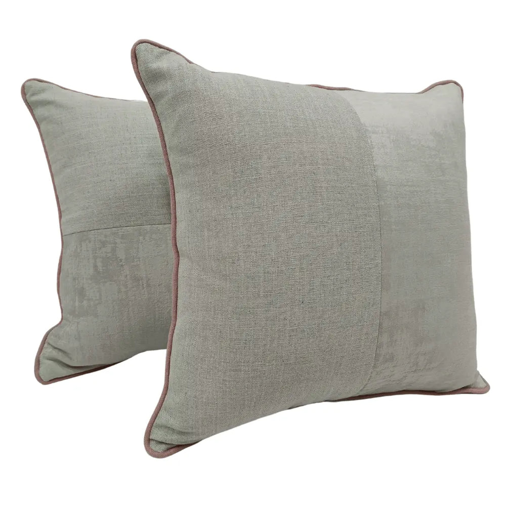 Add a subtle charm to your space with these soft-textured pillow covers, designed exclusively for indoor use. The blend of linen-like and velvet fabrics creates a unique contrast, while the delicate pink piping adds a refined touch. Perfect for elevating your living room, bedroom, or reading nook with understated elegance and comfort.