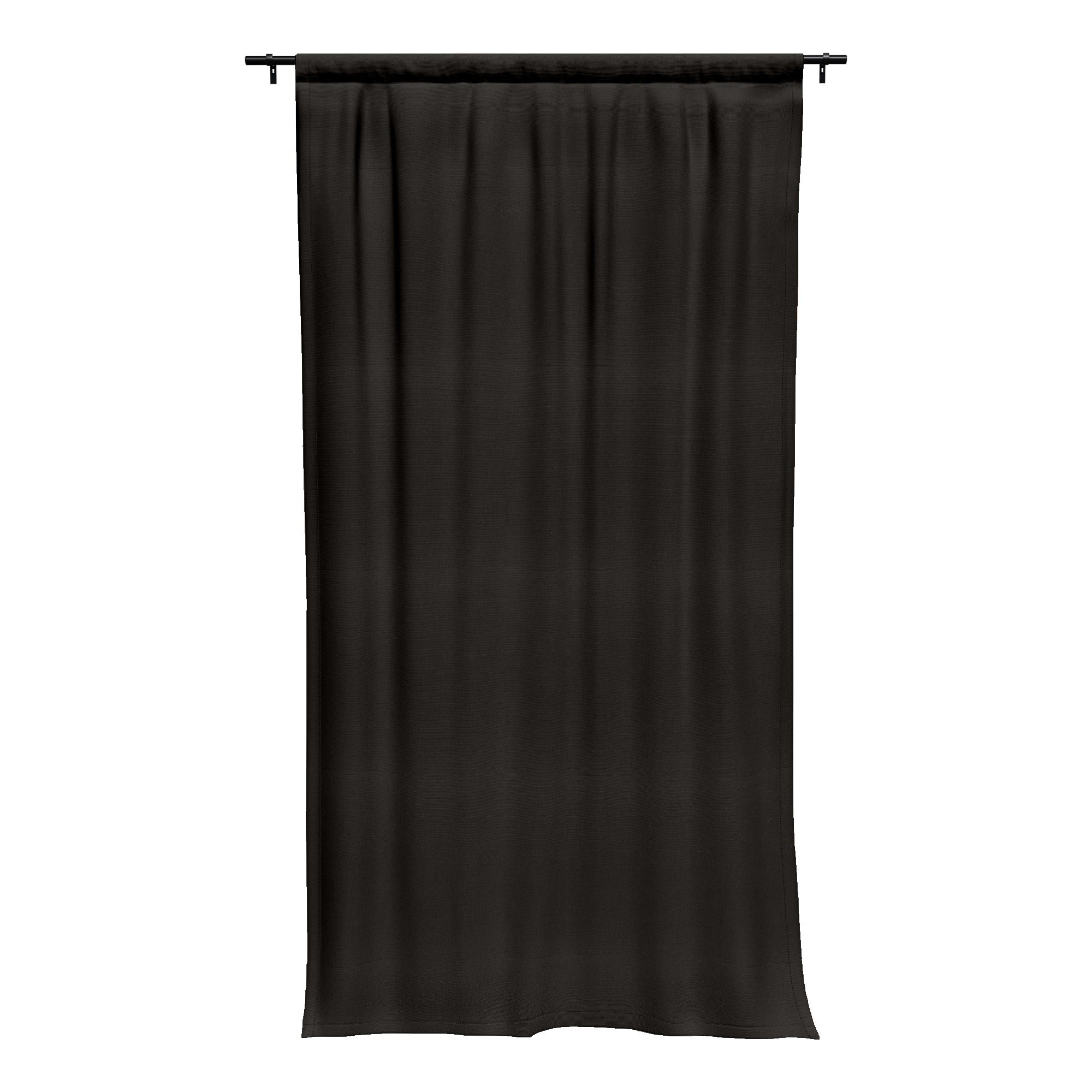 Your Canvas Coal curtains are custom-made to the specified length, with 50" width panels combining for larger installations. The deep charcoal requires quality installation to show properly—sloppy work shows more on dark fabrics. Choose Grommet headers for modern luxury spaces, Tab Top for casual elegance, Back Tab for hidden hardware, or Rod Pocket for traditional fullness. The ties are essential for daytime light management since Coal blocks so much sun.