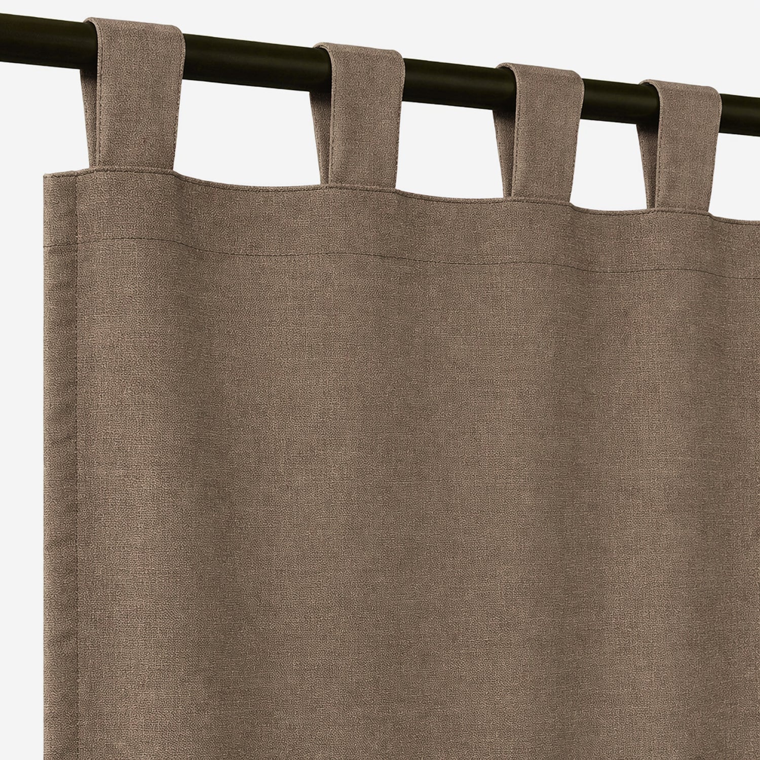 Canvas Taupe Chine curtains deliver textured neutral sophistication with outdoor performance. Each custom panel provides heathered depth and visual interest while maintaining taupe's versatile coordination across design styles.