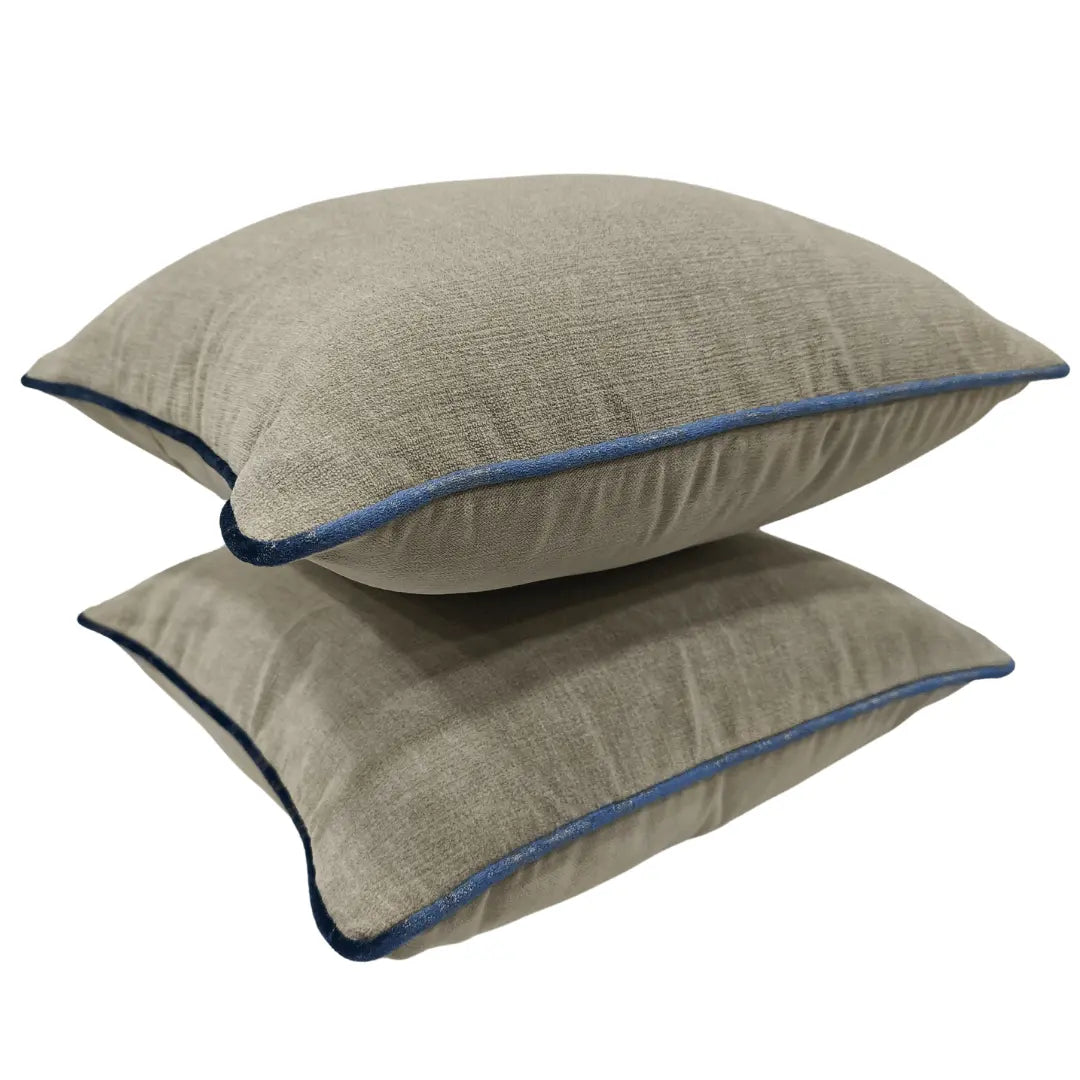 Add a refined touch to your space with these taupe pillow covers, designed for both comfort and style. The subtle texture enhances their sophisticated appeal, while the rich contrast piping in deep blue adds a striking visual accent. Soft and inviting, these covers blend effortlessly with modern, classic, or transitional interiors. Perfect for sofas, armchairs, or beds, they bring warmth and elegance to any indoor setting.