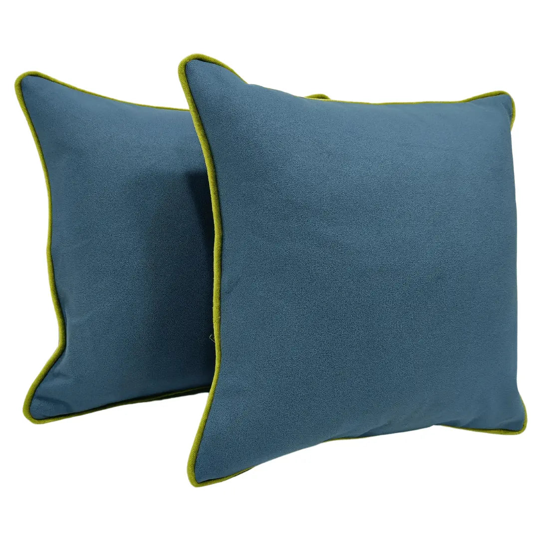Bring a modern touch to your home with these 16x16 indoor pillow covers, showcasing a bold teal front and deep charcoal back. The vibrant lime green piping adds a playful contrast, making these covers a perfect accent for your living room or bedroom decor.