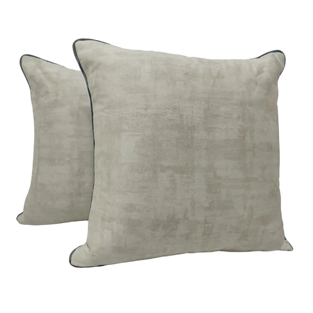 These stylish pillow covers feature a plush velvet front for a luxurious feel, complemented by a textured fabric back for durability and contrast. The refined color palette and sleek piping detail enhance their elegant appeal, making them a perfect addition to any indoor space.