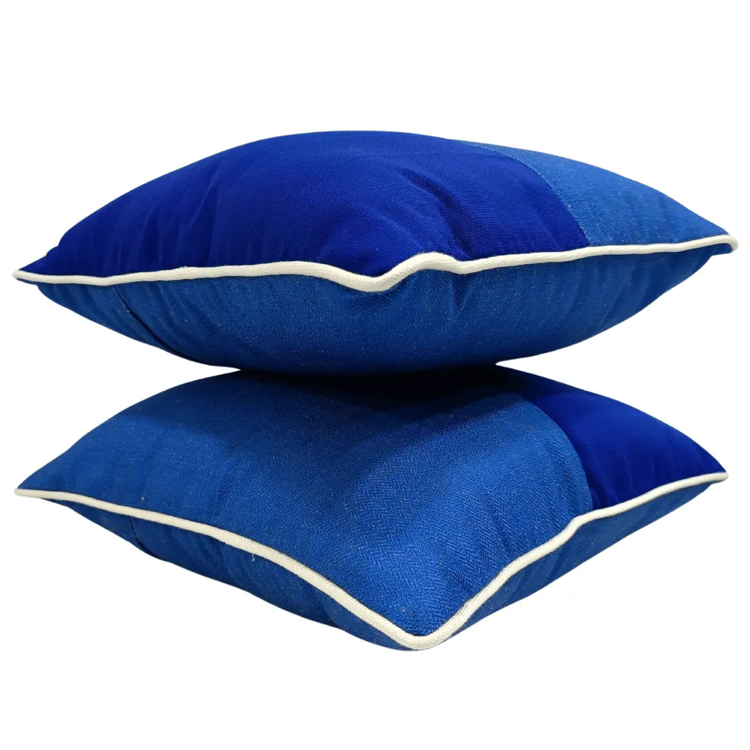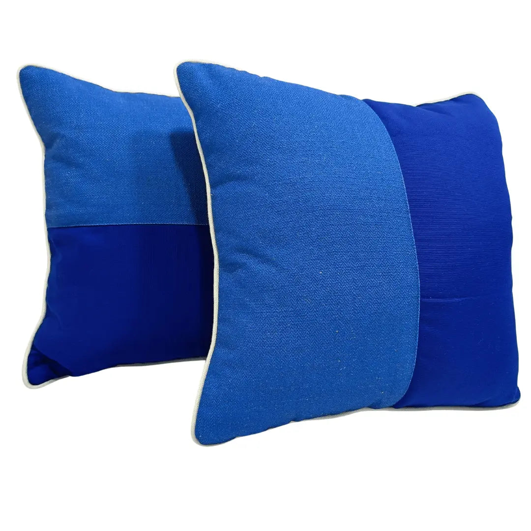 Bold shades of blue create a striking contrast in this modern two-tone design. The mix of textures enhances the visual appeal, while the subtle pattern adds depth. Finished with crisp white piping for a polished touch, these pillow covers bring a refreshing and contemporary feel to any indoor space.