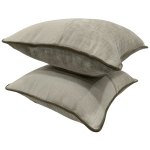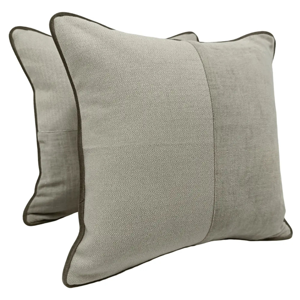 These elegant pillow covers blend subtle textures in a warm taupe palette. A mix of soft, velvet accents and a refined herringbone weave create a sophisticated yet inviting look. Perfect for adding depth and warmth to any indoor space.