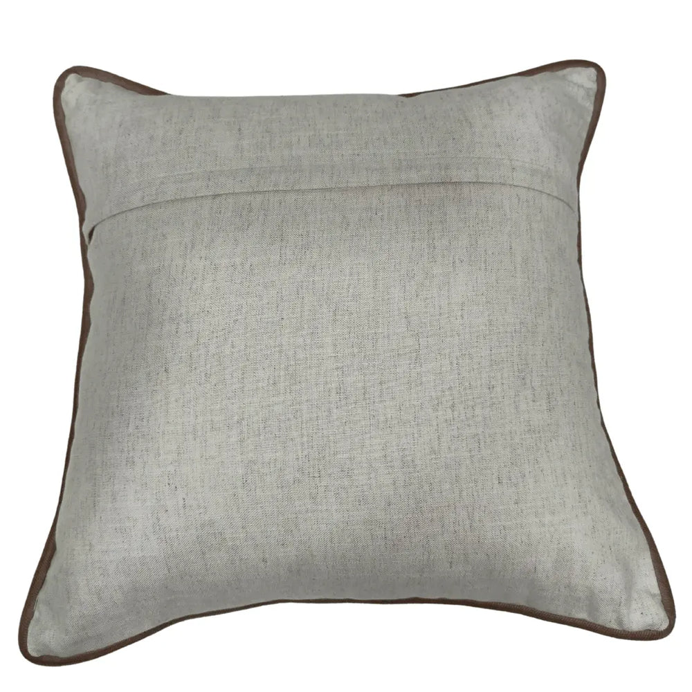Enhance your space with these white and taupe pillow covers, featuring delicate embroidery and a soft brown trim. The neutral tones and intricate design add a refined touch, making them perfect for any modern or classic interior.